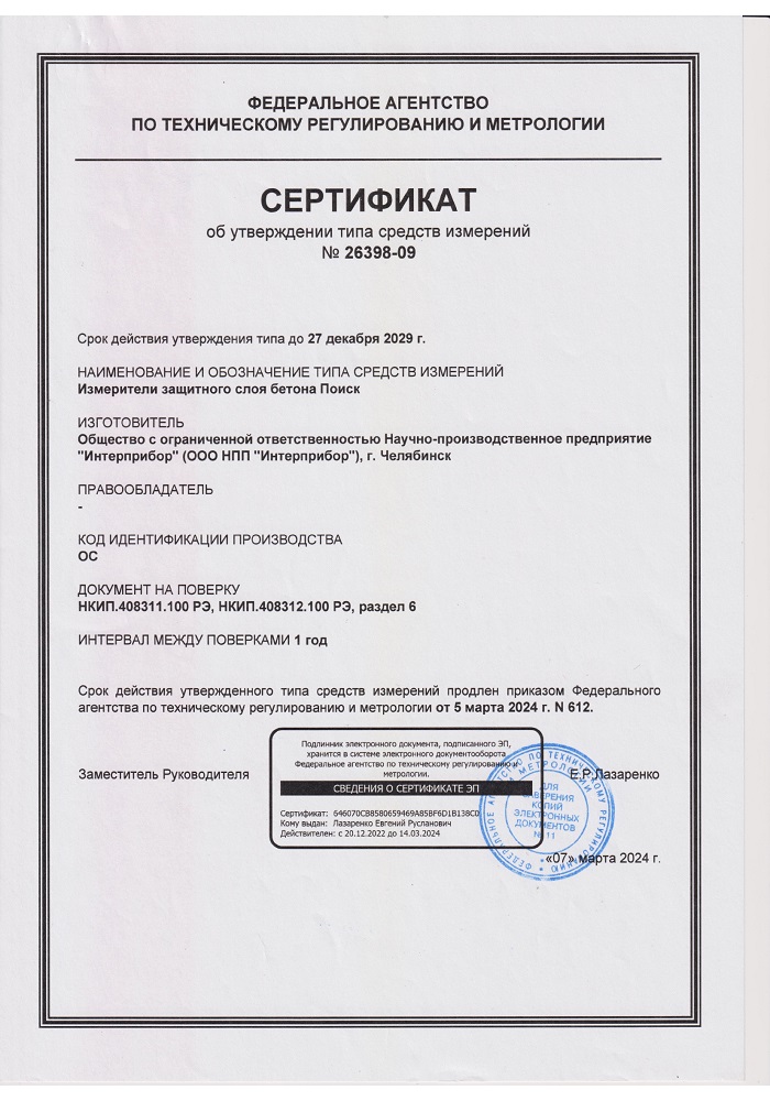 Измеритель толщины защитного слоя бетона ПОИСК-2.6